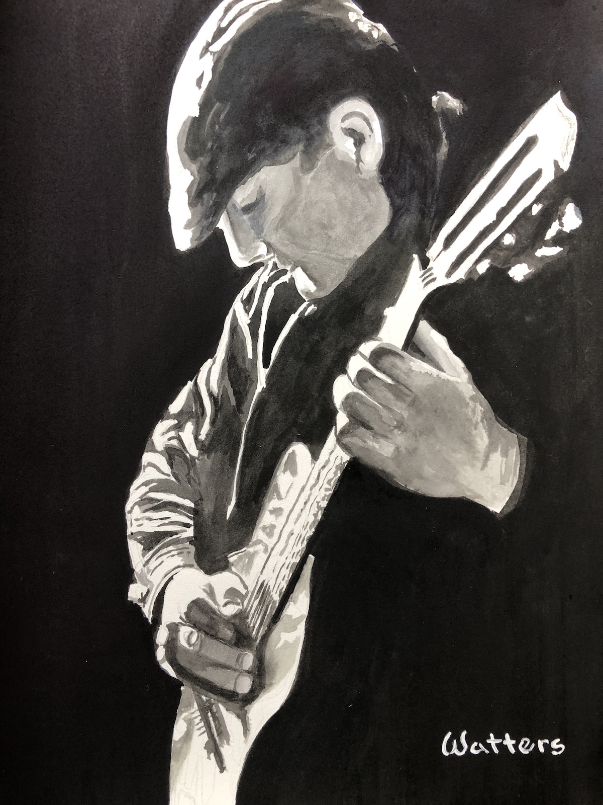 Guitarist B&W Watercolor Painting